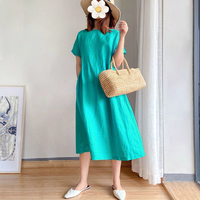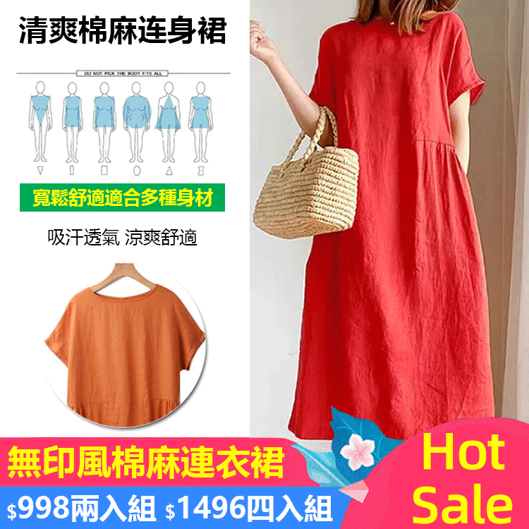 [4]【超夯活動】四入組 無印風棉麻連衣裙 $1499 均價374/組
