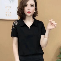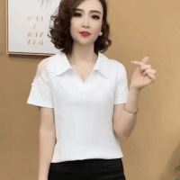 2026年夏季新款 純色翻領蕾絲設計時尚洋氣女 面料柔軟舒適透氣 純色百搭